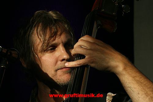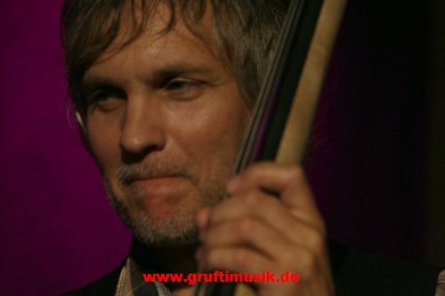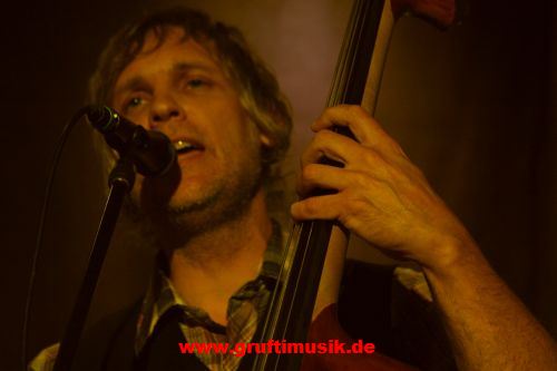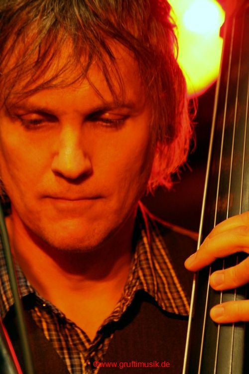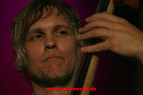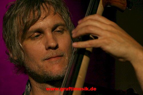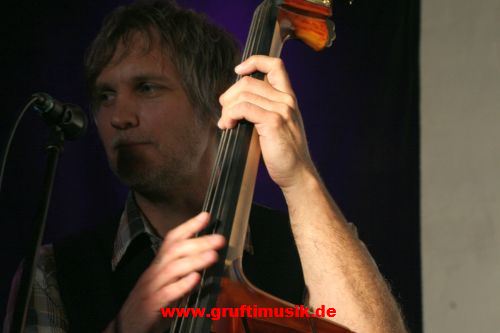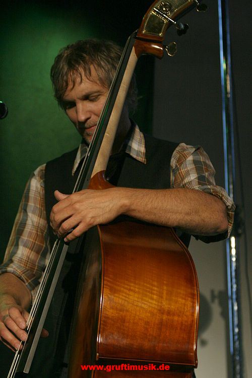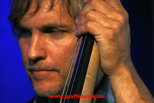 Kontrabassspieler fügt sich da