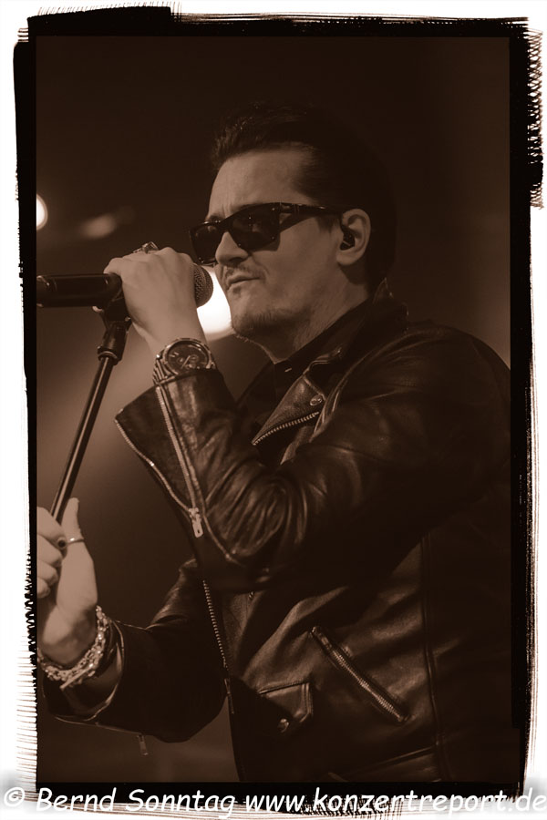 Sonnenbrille durch den Sänger. Absolut verständlich, dass sich